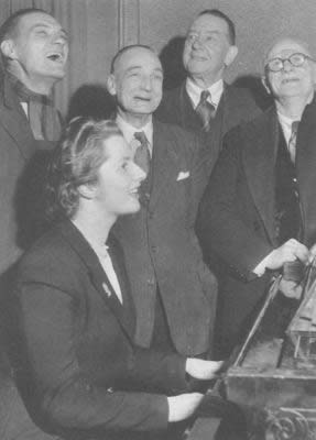 在参加了一次平淡而简短的政治辩论后,她以钢琴伴奏,与4位选民一起唱歌